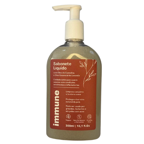 O Sabonete Líquido Corporal Immune é o único produto da nossa linha com fragrância, e ela vem exclusivamente do óleo essencial de lavanda — ingrediente natural, conhecido por suas propriedades calmantes e relaxantes. Essa fragrância não é adicionada artificialmente: ela nasce do próprio óleo essencial, oferecendo um cuidado sensorial seguro. Mais do que limpar, o sabonete convida a um instante de presença e bem-estar, transformando o banho em um pequeno ritual de spa, sempre com o respeito e a proteção que a sua pele merece.